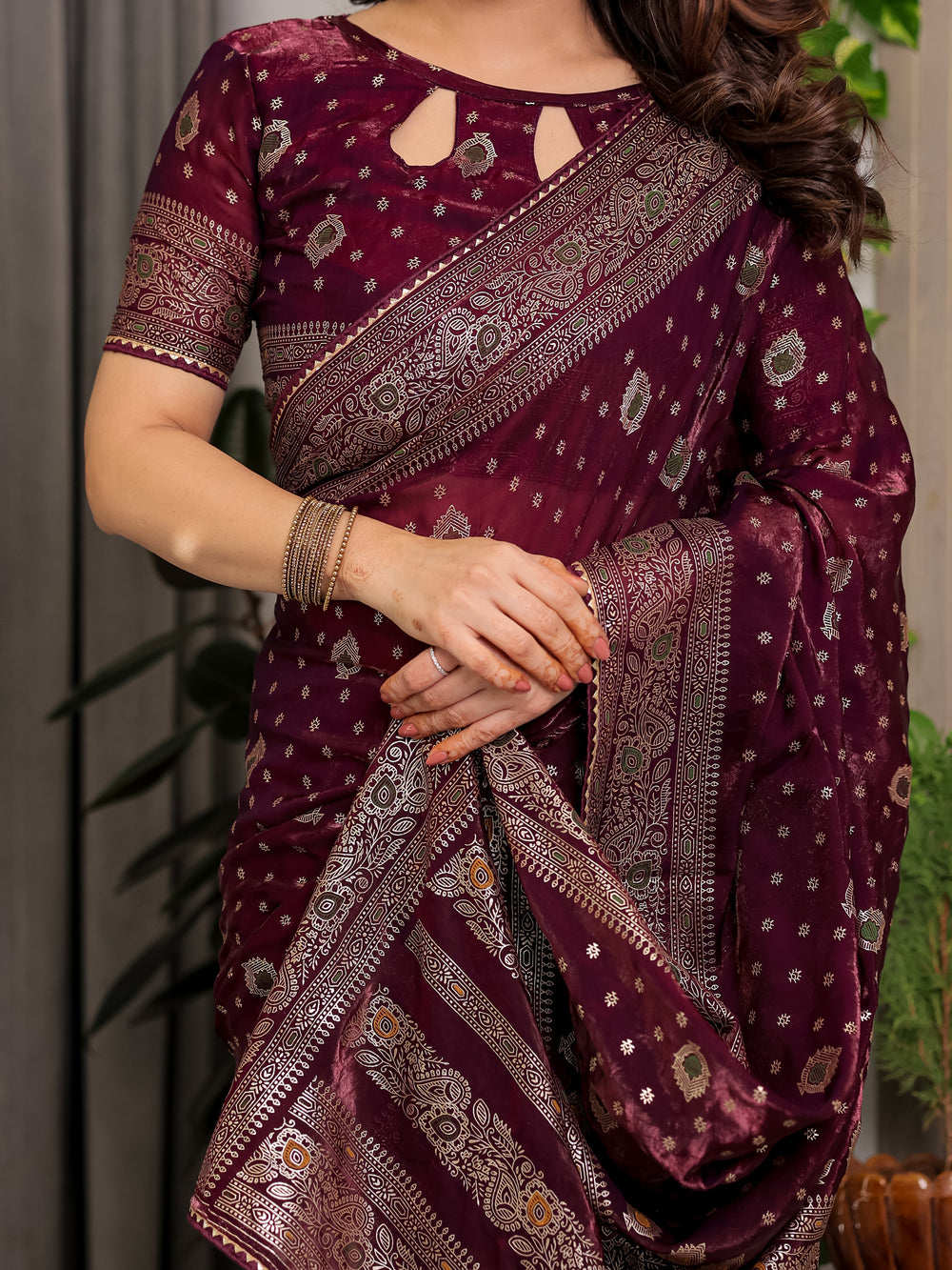 4. Paisley Block & Foil Fusion Saree