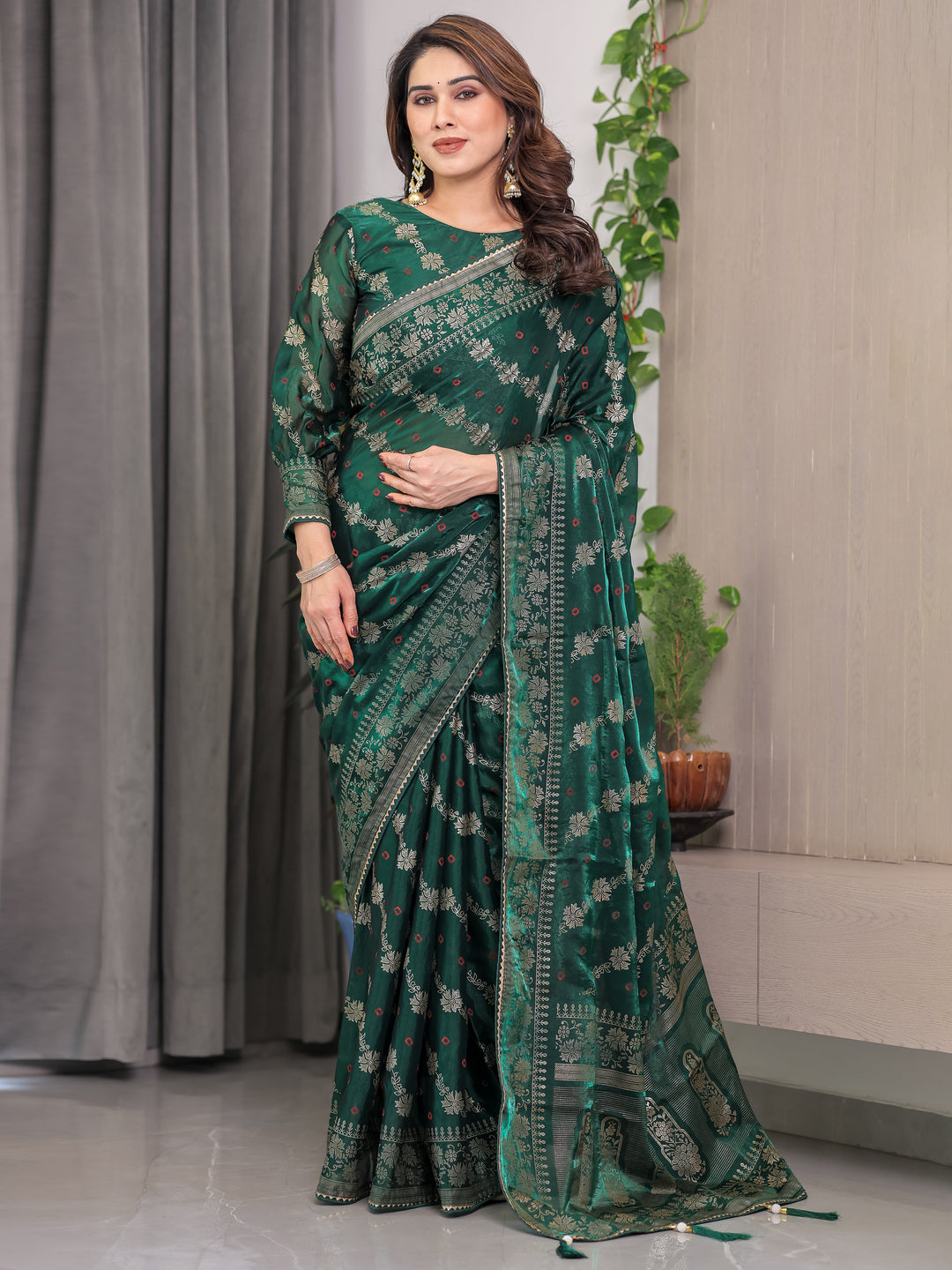 Emerald Green Foil Highlight Saree